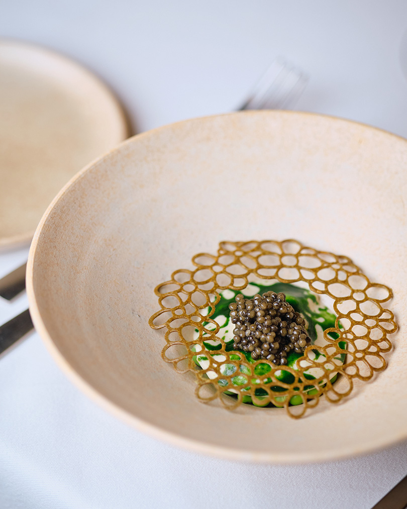 Malt pillow with crab and Gold Selection Caviar.